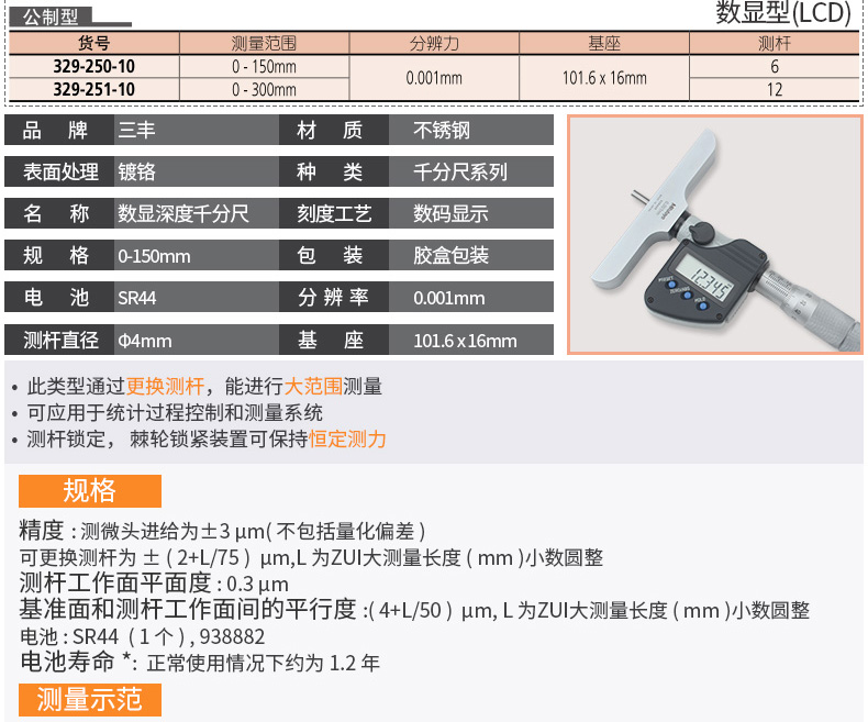 三丰 数显深度千分尺 329