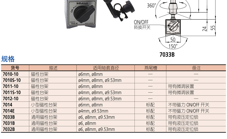 三丰 磁性表座 万向磁力表座 7011S-10 7031B ...