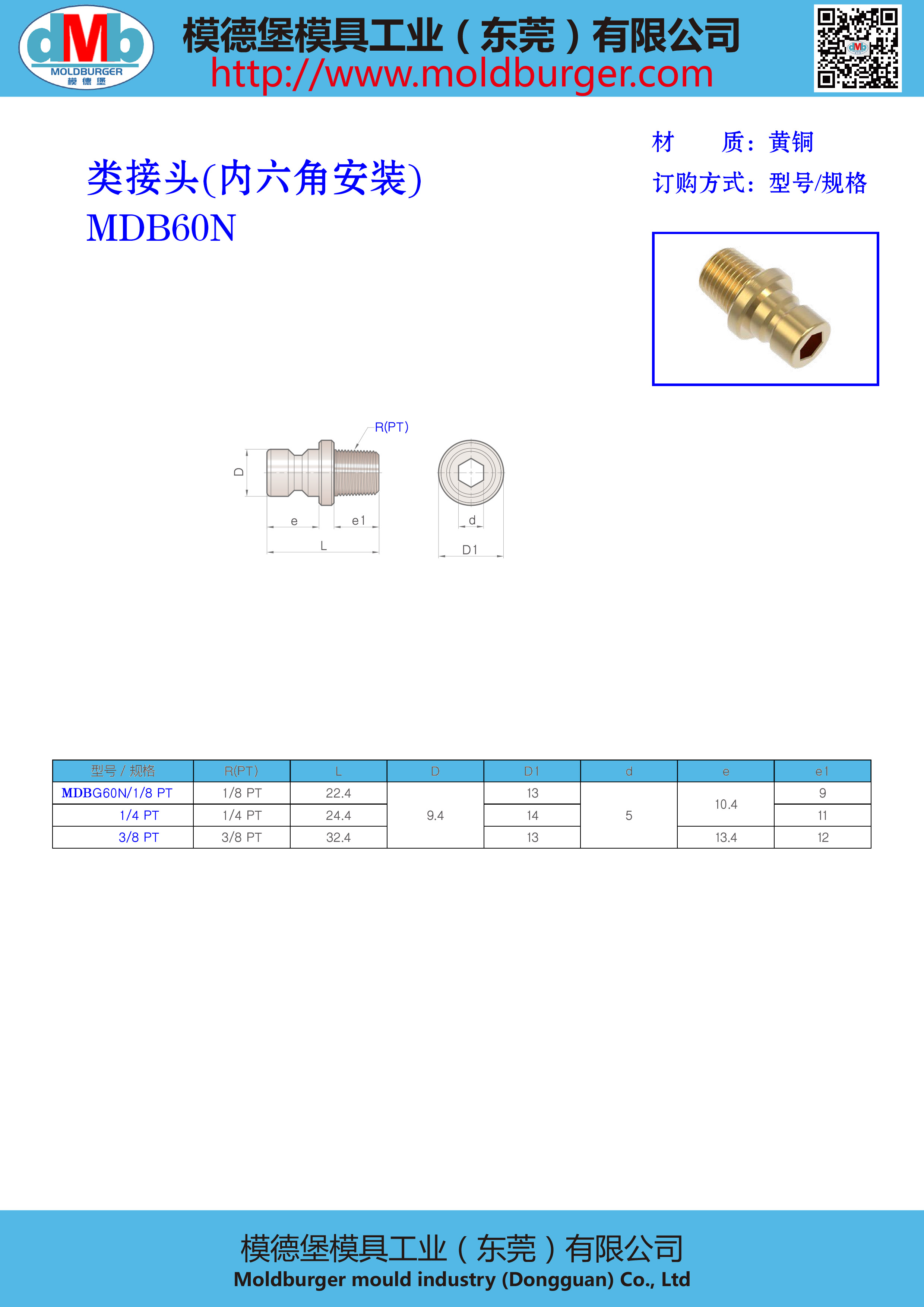 G60N 内接头(内六角安装) 运水接头 快插水咀 快速水咀...