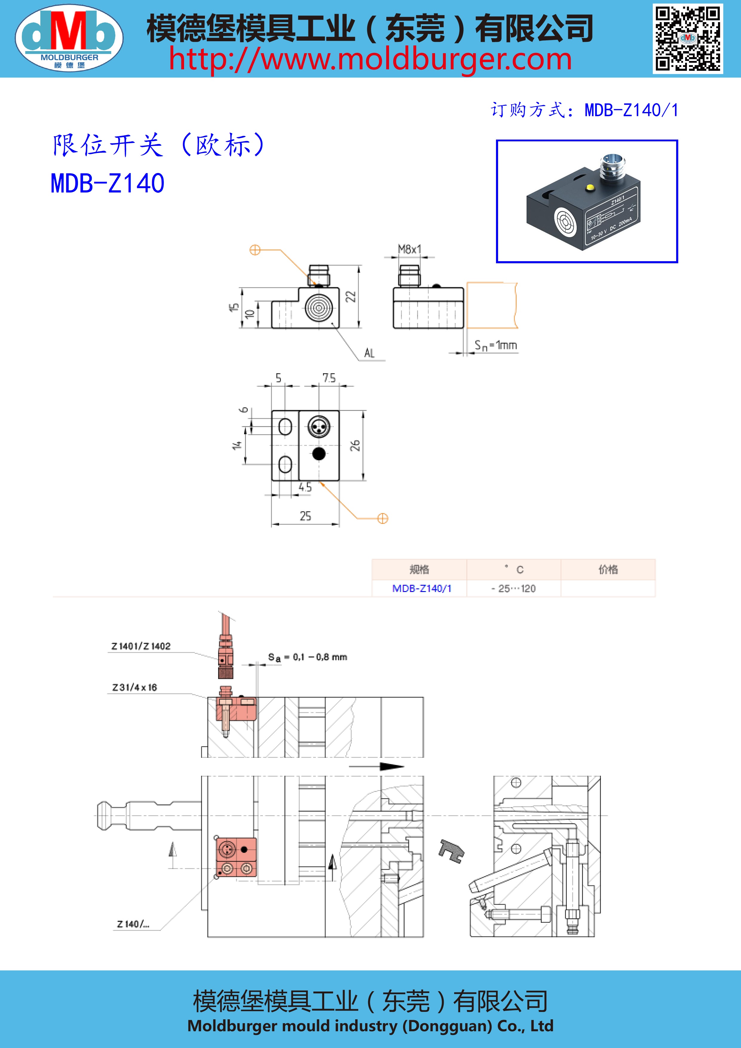MDB-Z140 欧标限位开关微动开关复位开关 行程开关