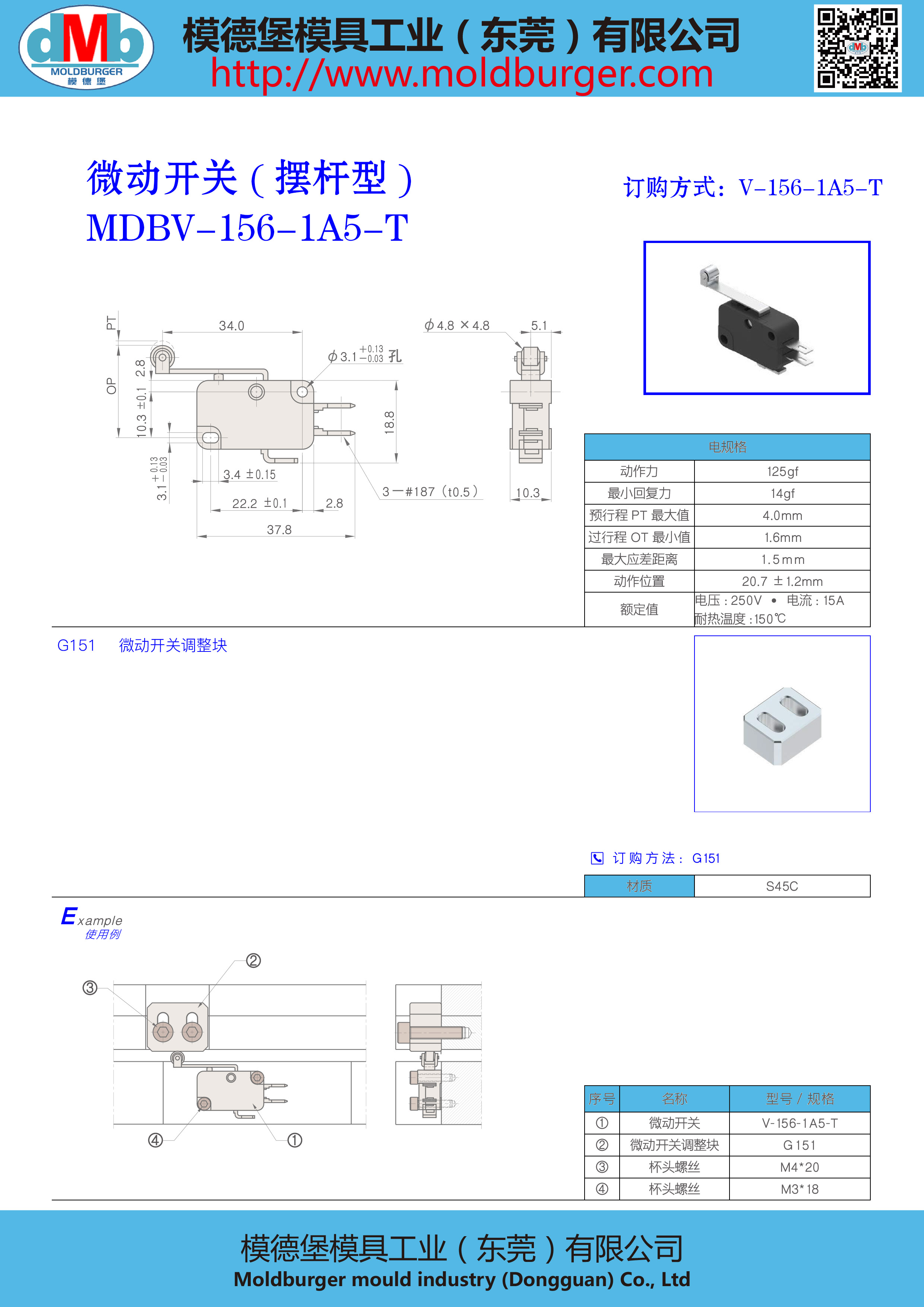 MDB-V-156-1A5-T 限位开关 微动开关 复位开关...