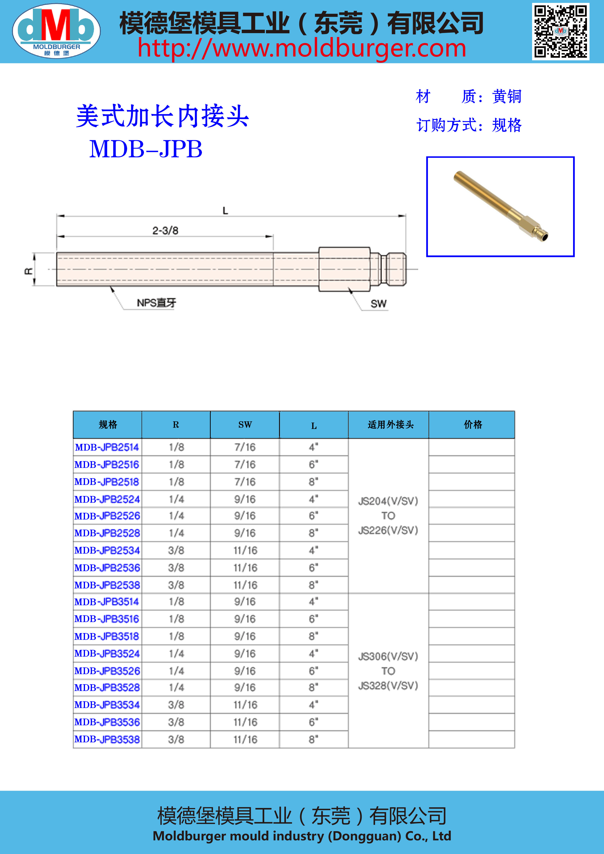 MDB-JPB美标加长内接头