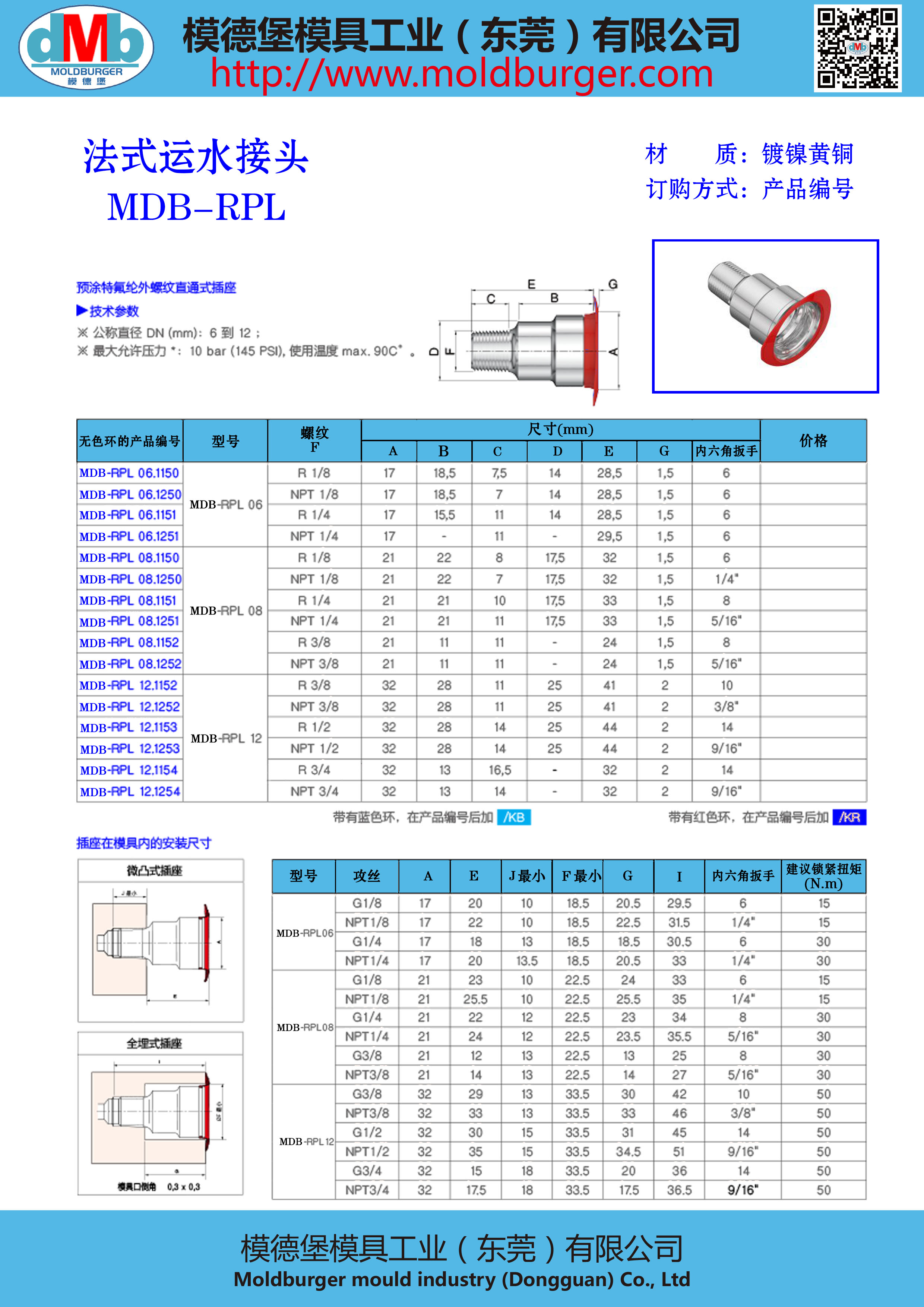 MDB-RPL欧标法式运水接头