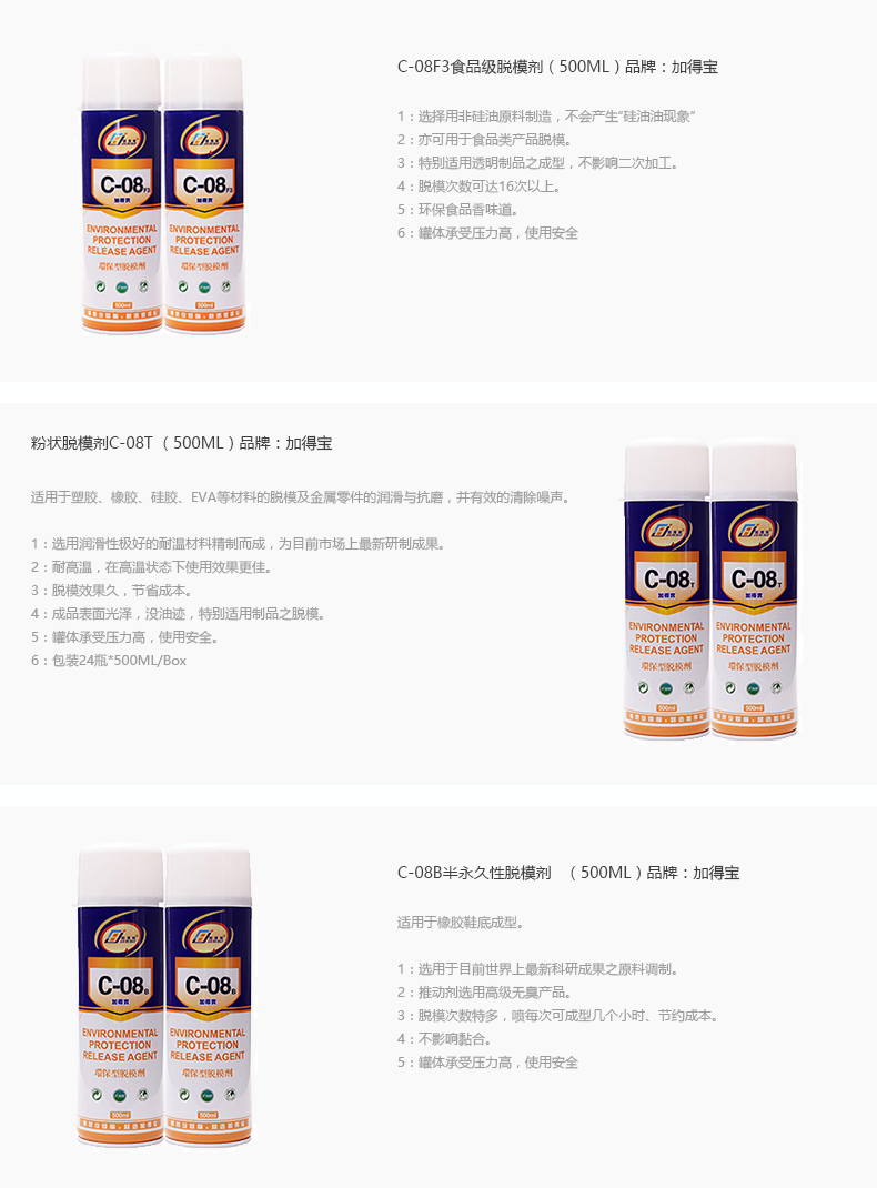 C-08F3 食品級脱模剂 500ml x 24支