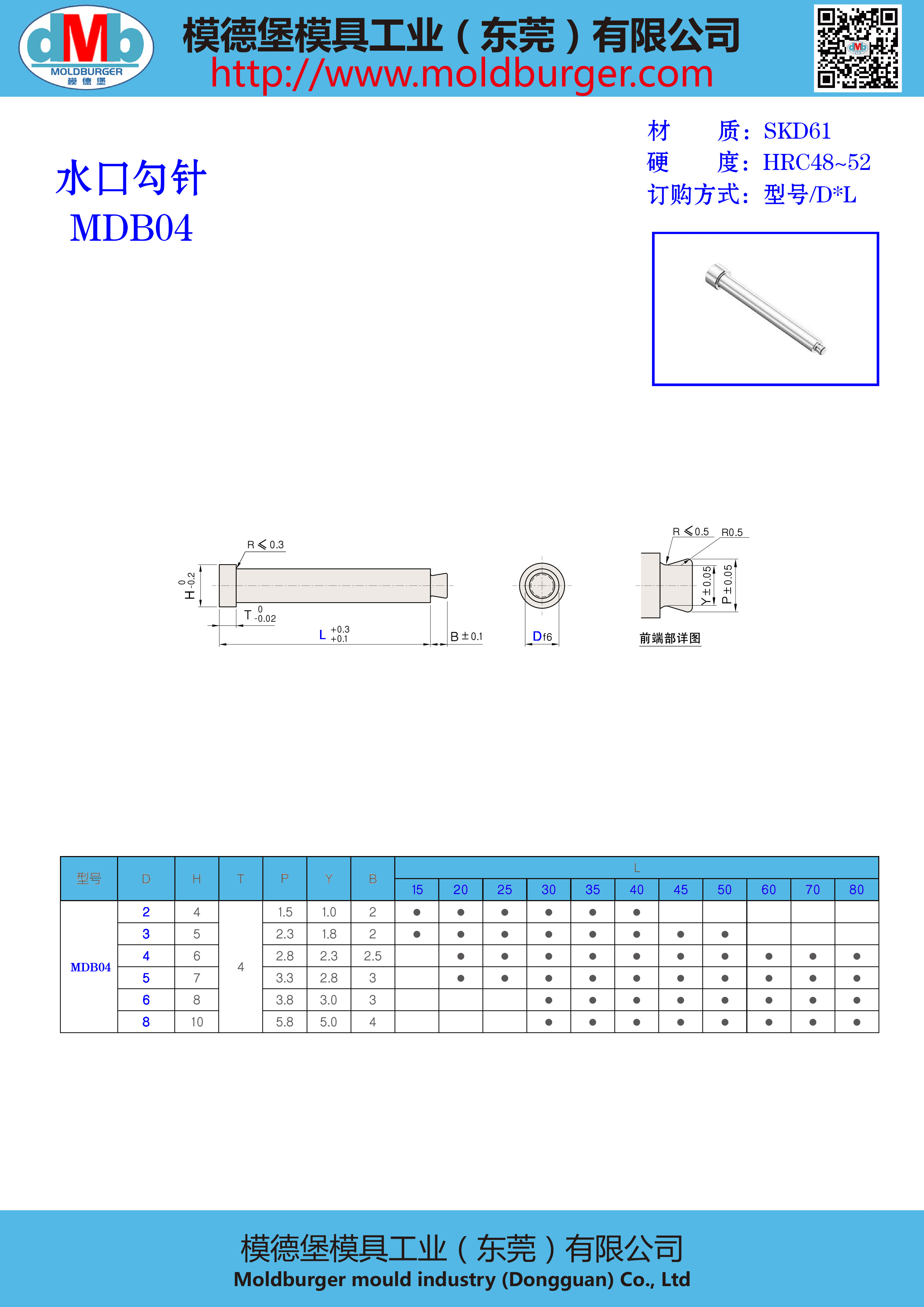 MDB04 水口勾针 拉料销 拉料针 标准型