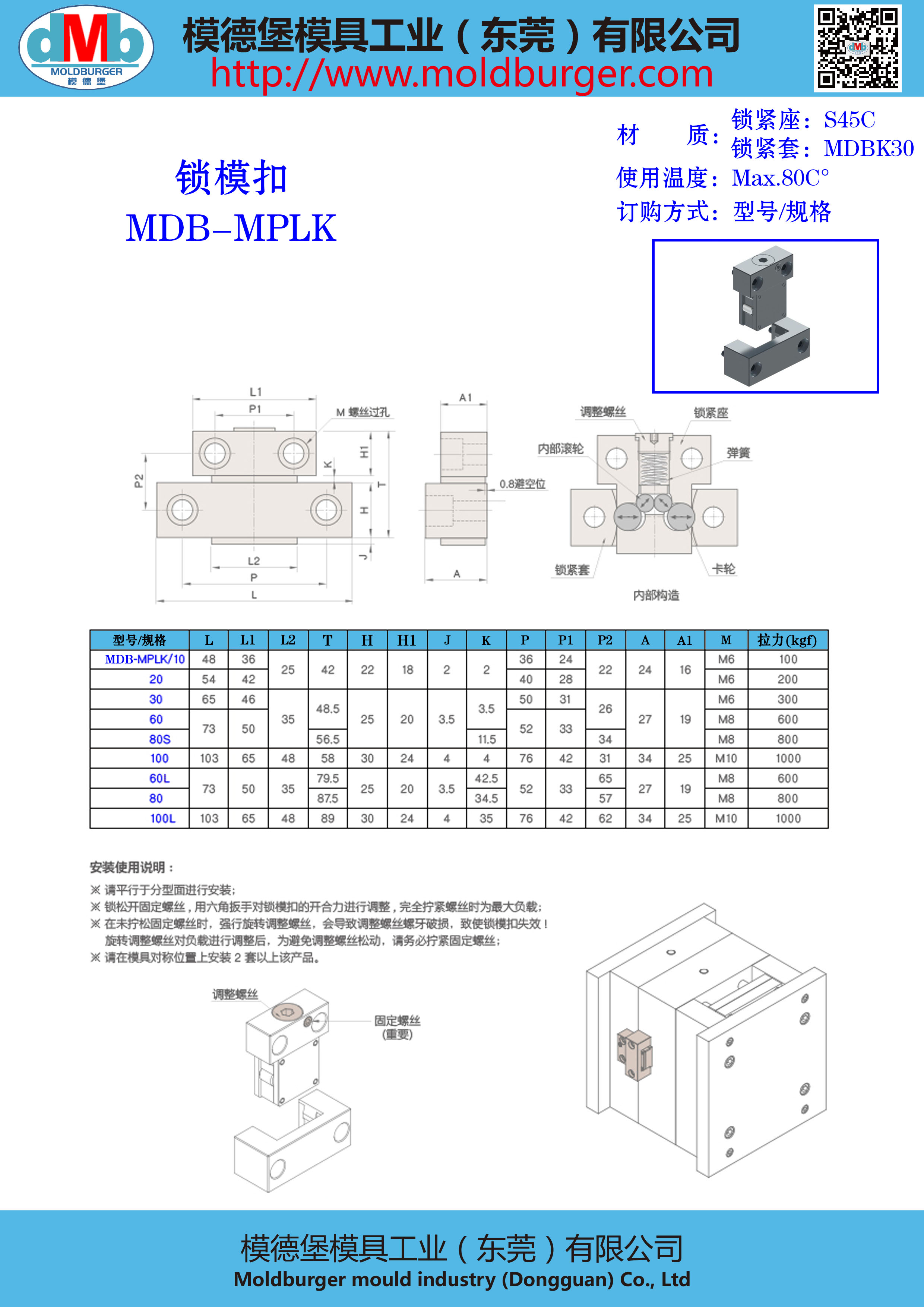 MDB-MPLK日标锁模扣拉钩扣机开闭器锁模器卡轮式锁模组件...