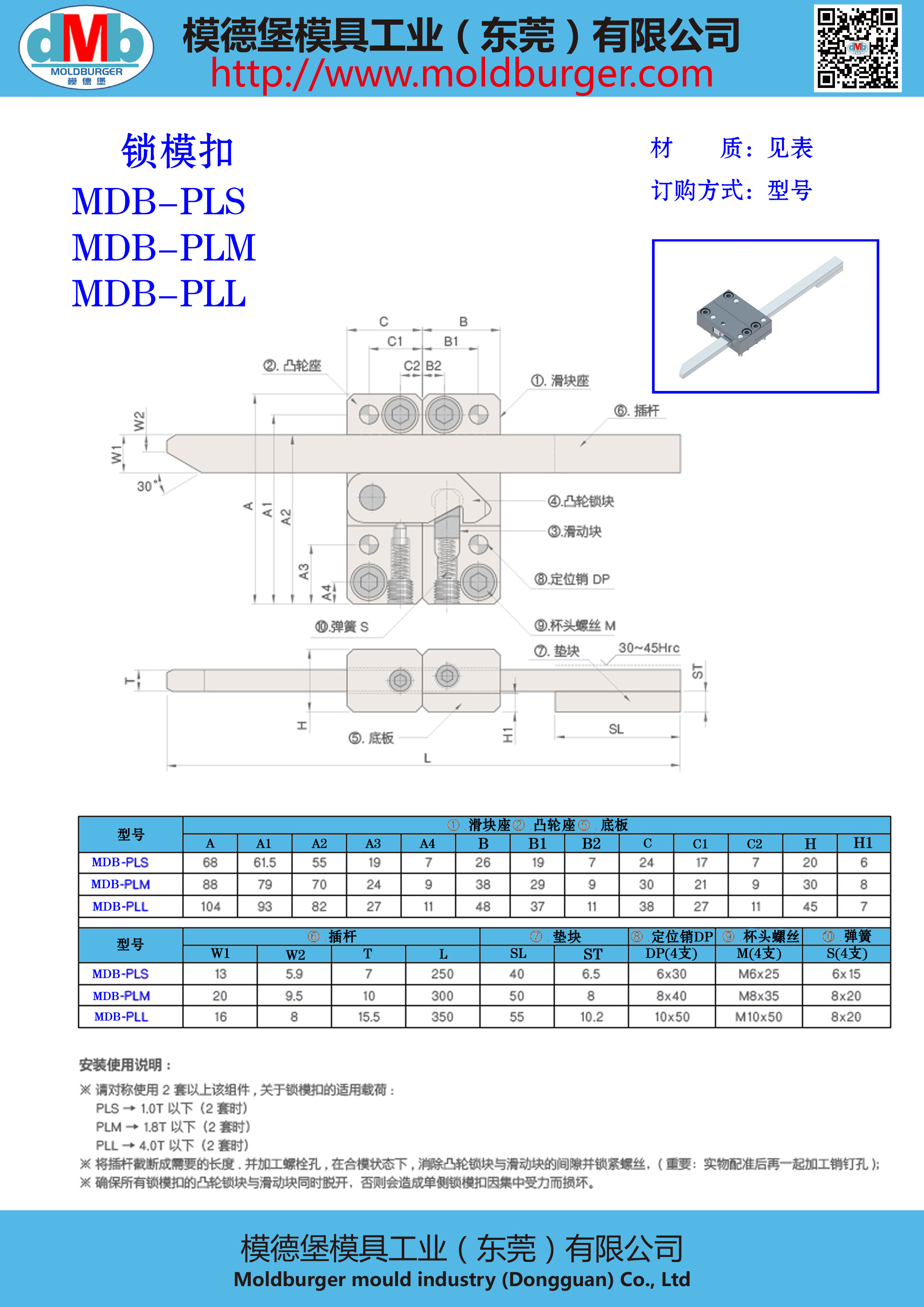 MDB-PLSY-PLMY-PLL日标定距锁模扣插销式锁模器...