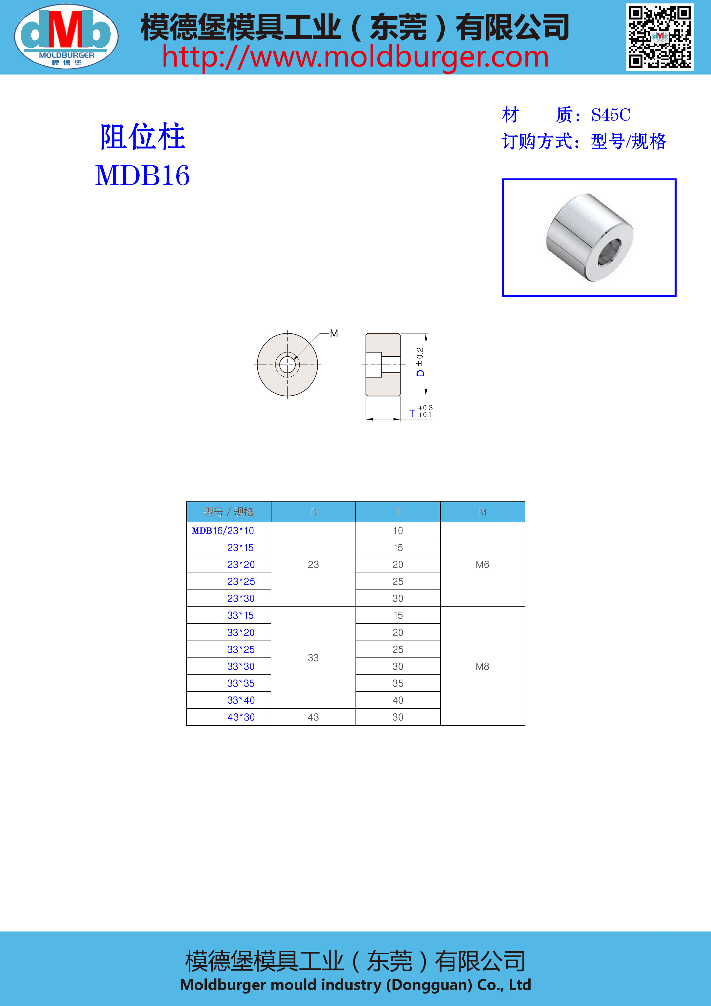 MDB16 限位柱 限位块 顶出限位 限位钉 限高柱