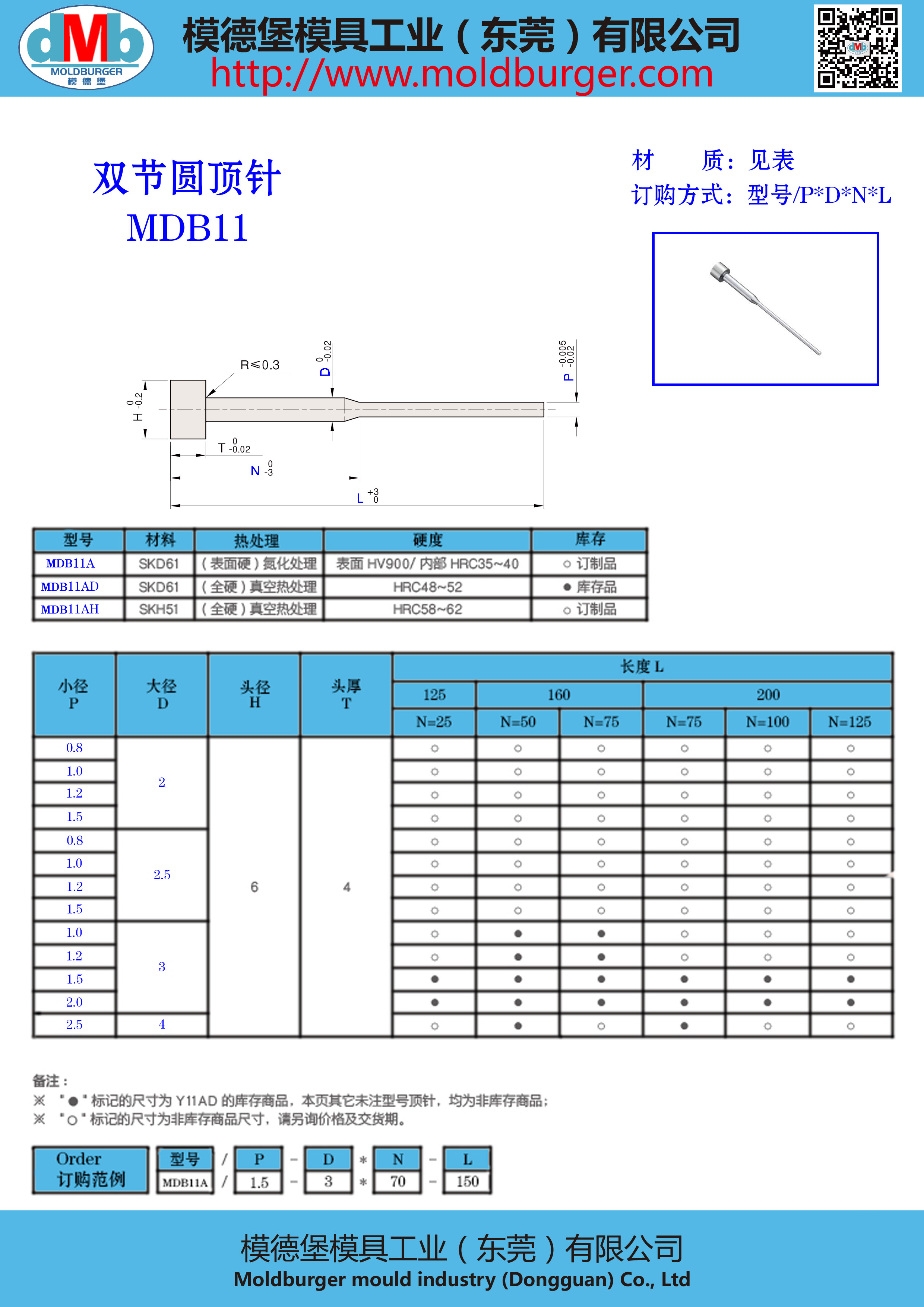 MDB11 双节圆顶针 双节顶针 推杆 顶杆 托针 双托顶针...