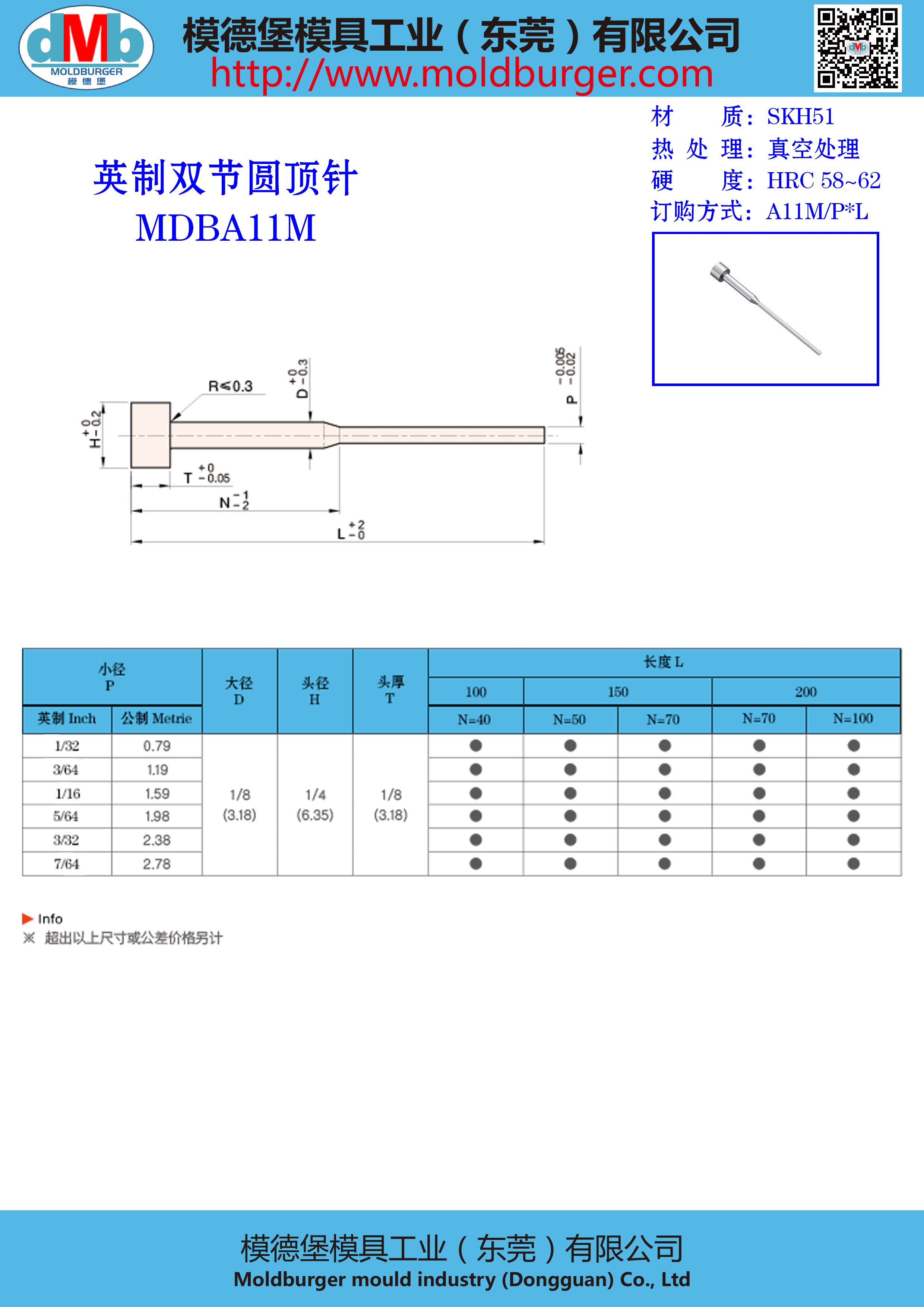 MDBA11M英制美标双节圆顶针全硬(定做品,请联系客服报价...