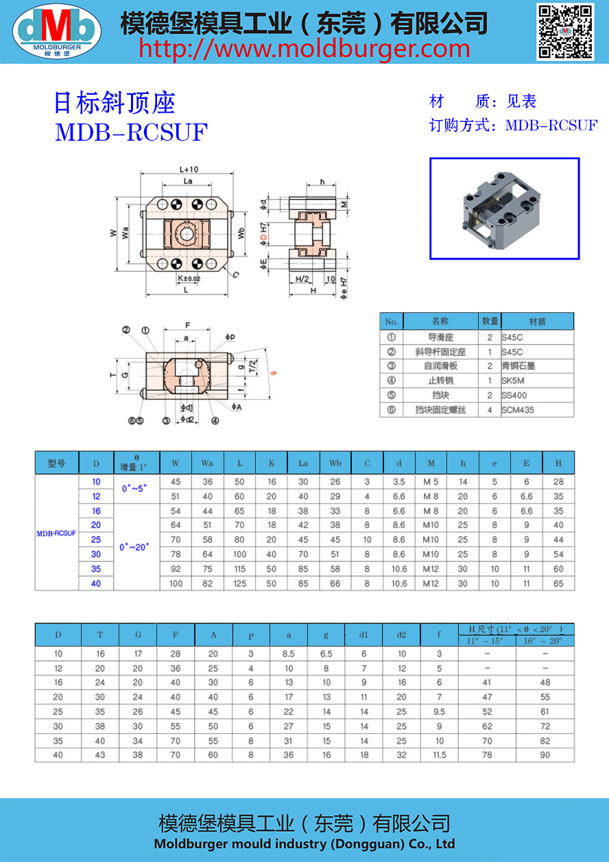 MDB-RCSUF日标斜顶座固定型斜顶滑座斜顶装置活型芯组件