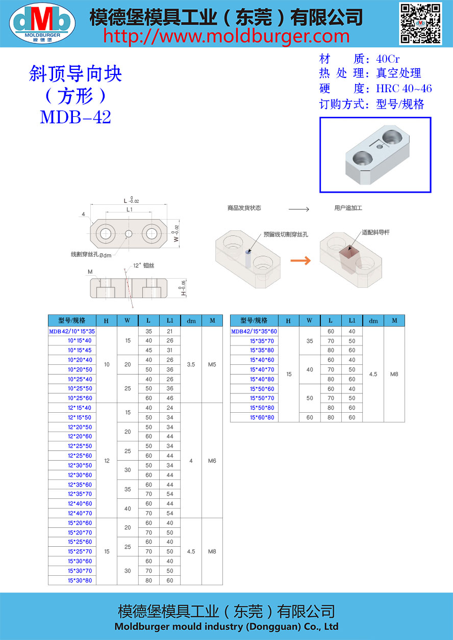 MDB-42 斜顶导向块 斜顶导套 斜推套 斜顶导向块 方形