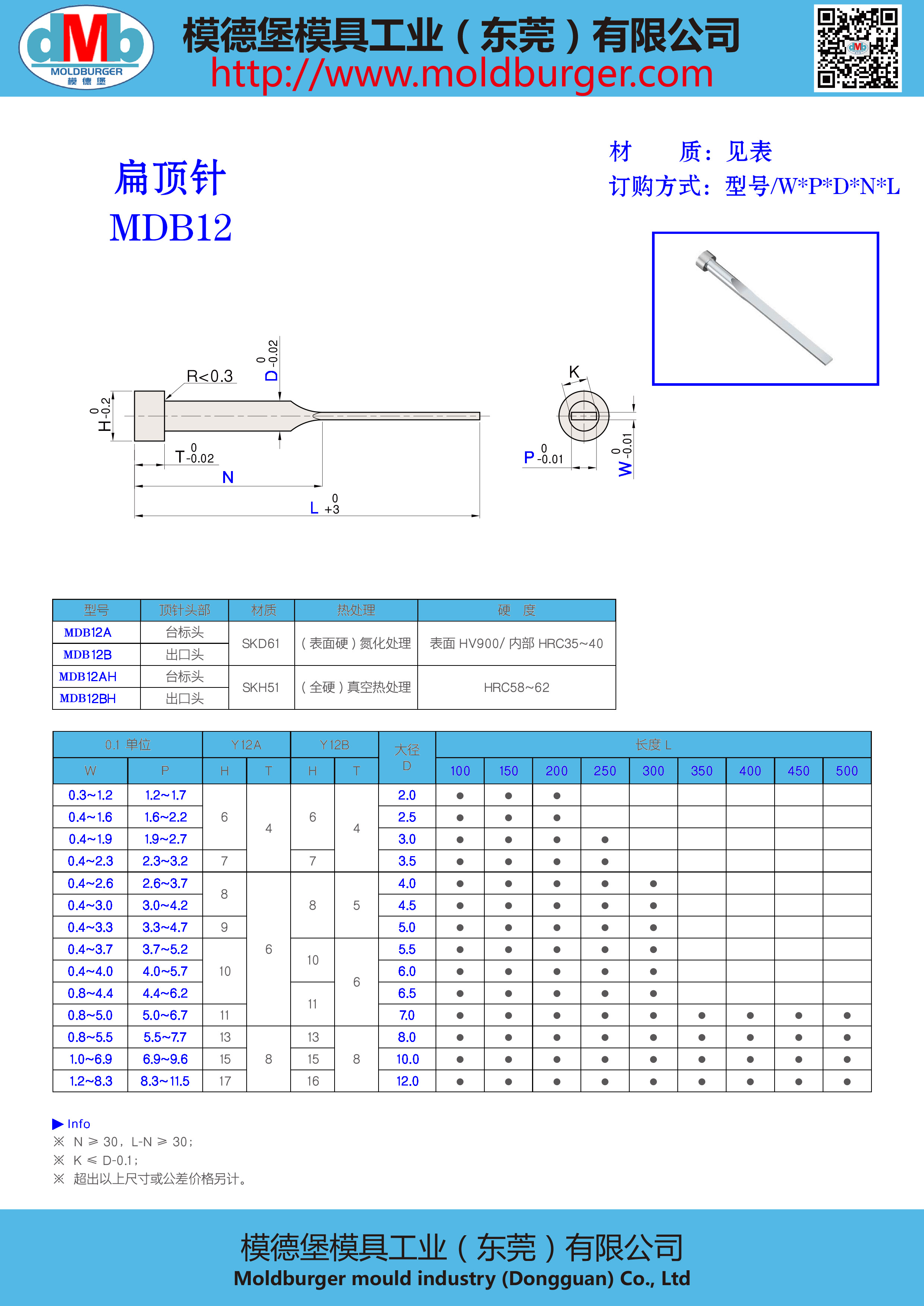 MDB12国内A型扁顶针 国内B型 扁销 扁针 方顶针 扁条...