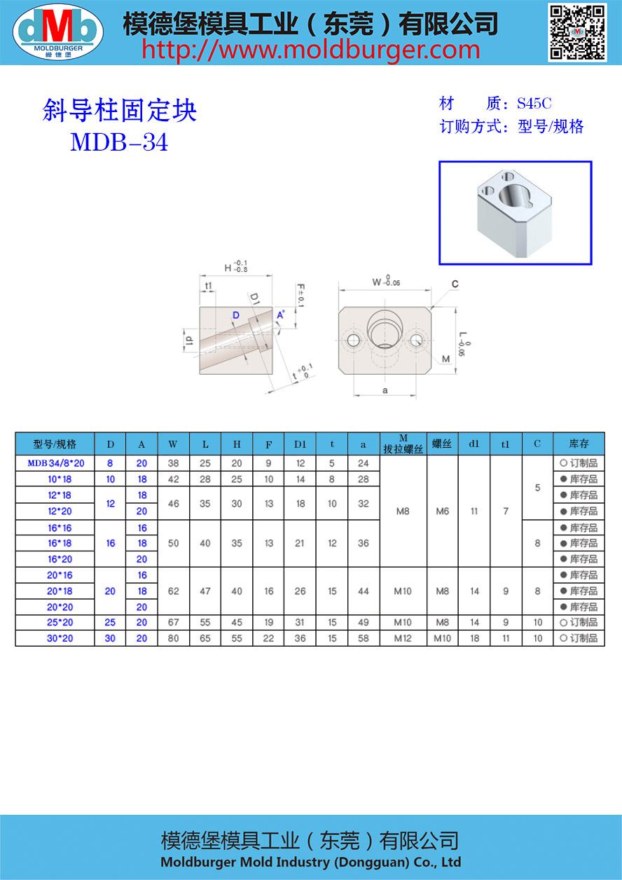 MDB34 斜导柱固定块 斜导柱固定座 斜边固定座