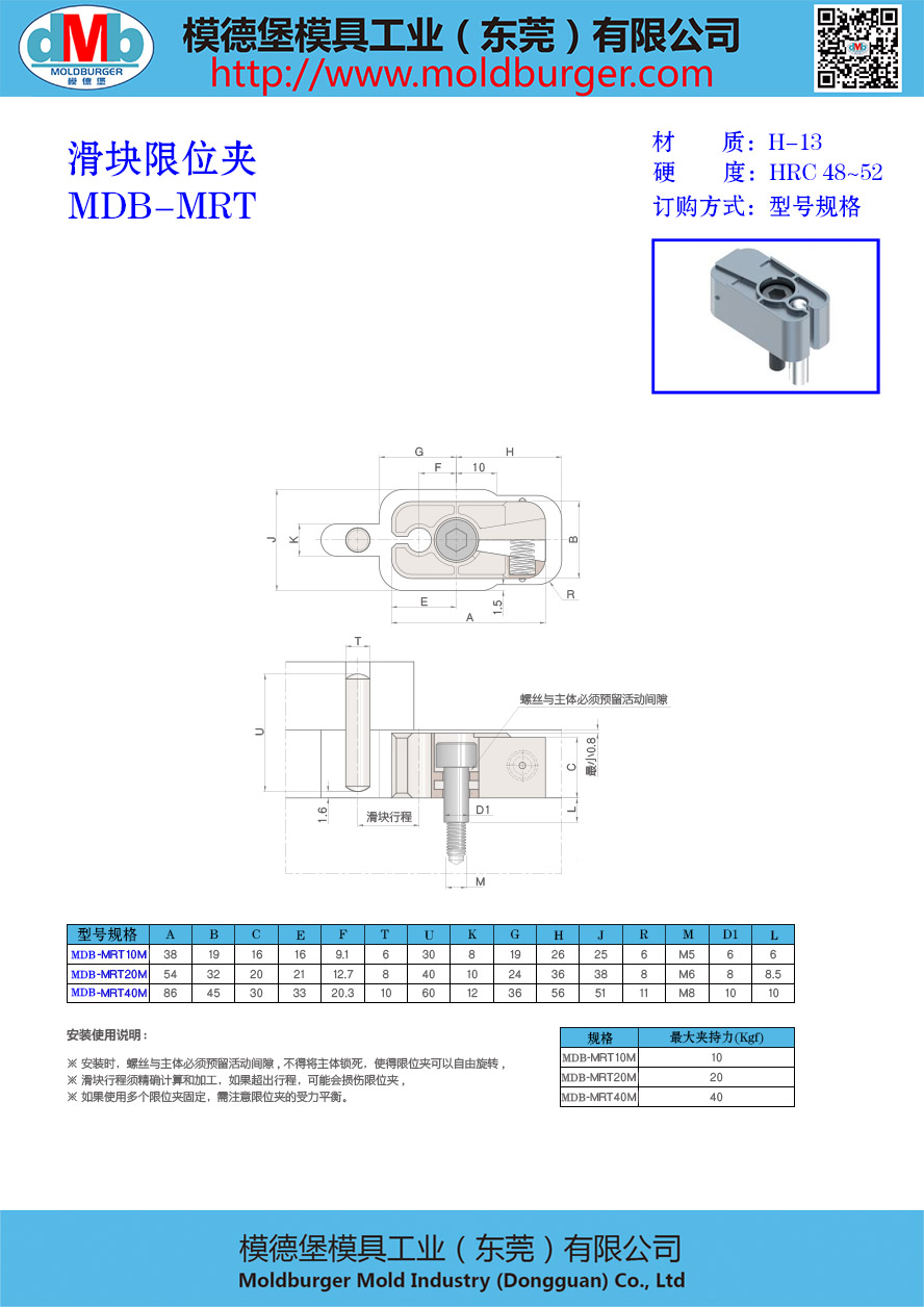 MSB-MRT滑块限位夹滑块定位限位固定器行位扣行位夹定位珠