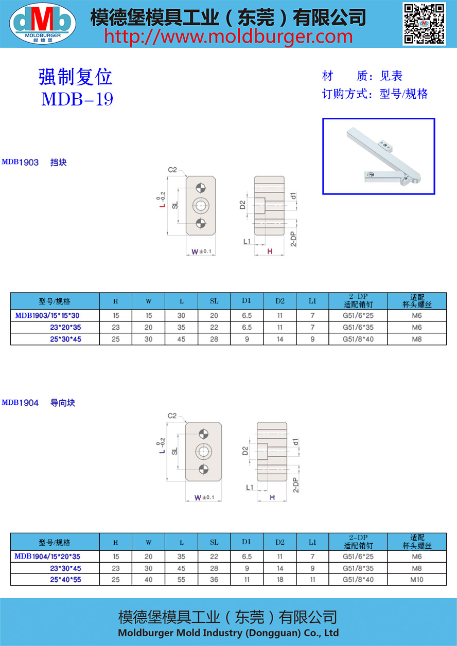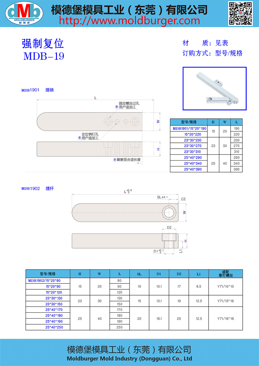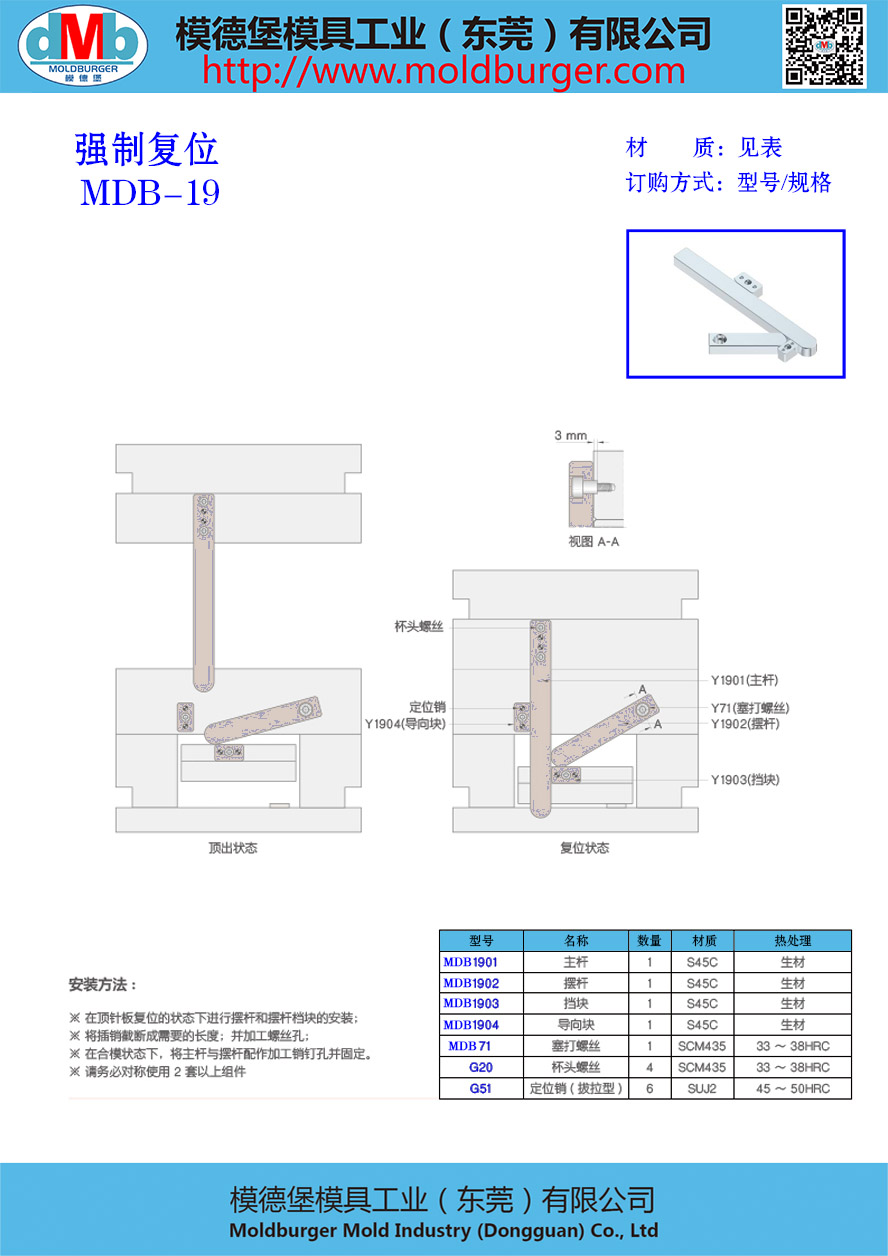 MDB19 顶出复位机构 复位机构 强制复位 顶针板早回装置