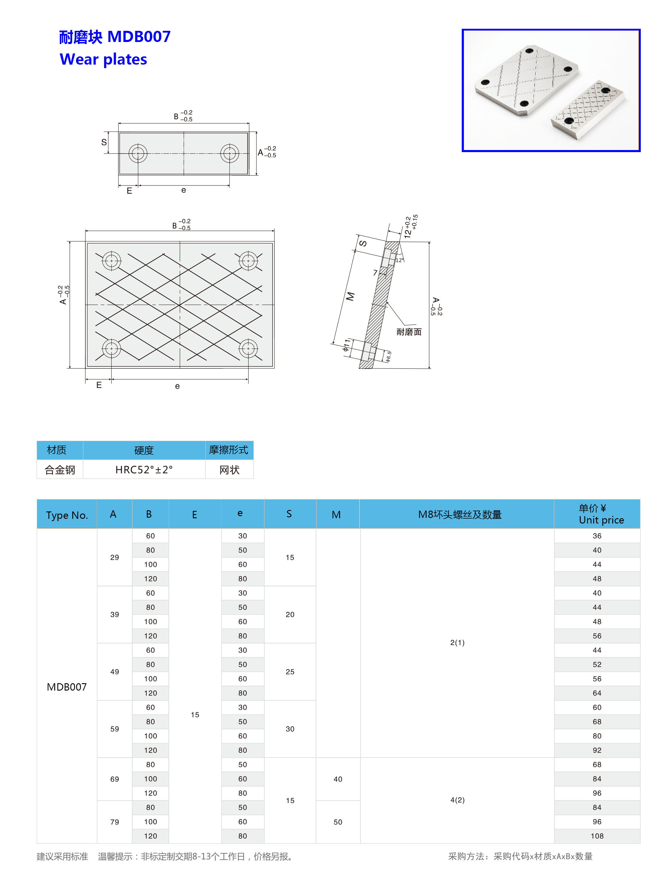 标准耐磨块耐磨板模具配件厂家生产定制 MDB007