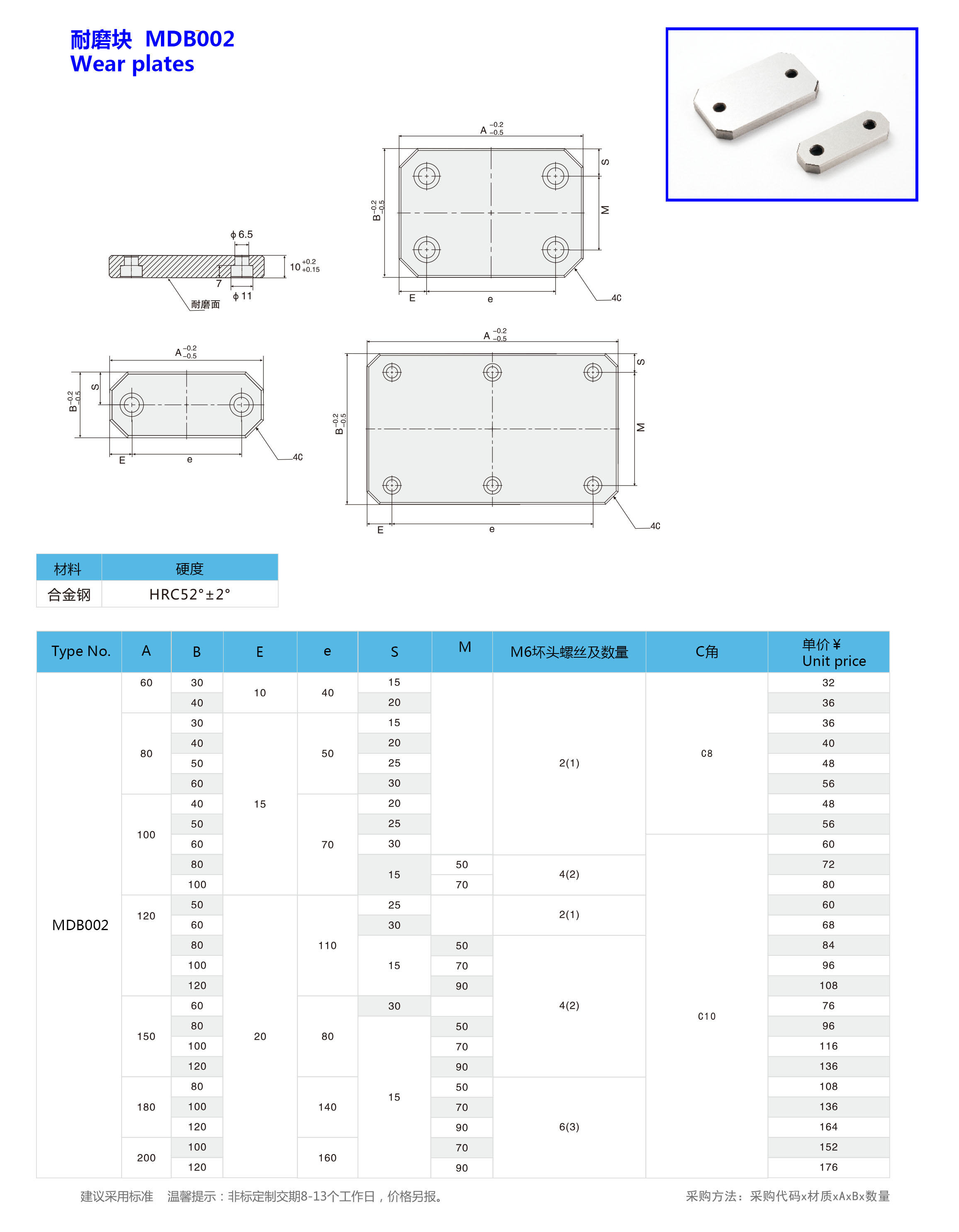 标准耐磨块耐磨板模具配件厂家生产定制 MDB002