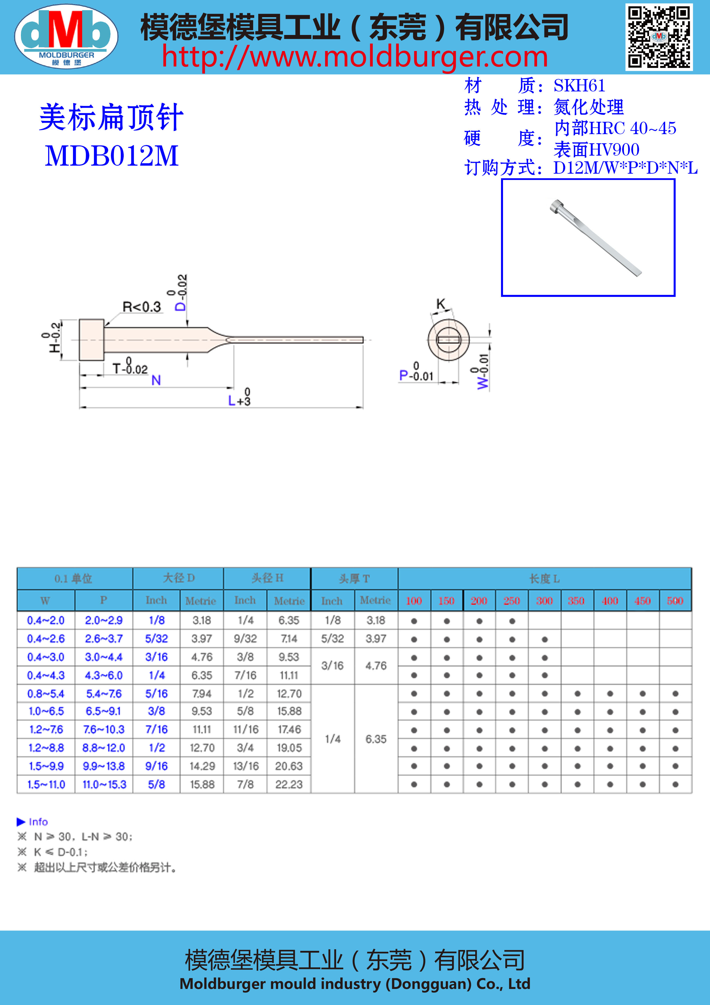 MDBA12英制美标扁顶针表面硬(定做品,请联系客服报价)