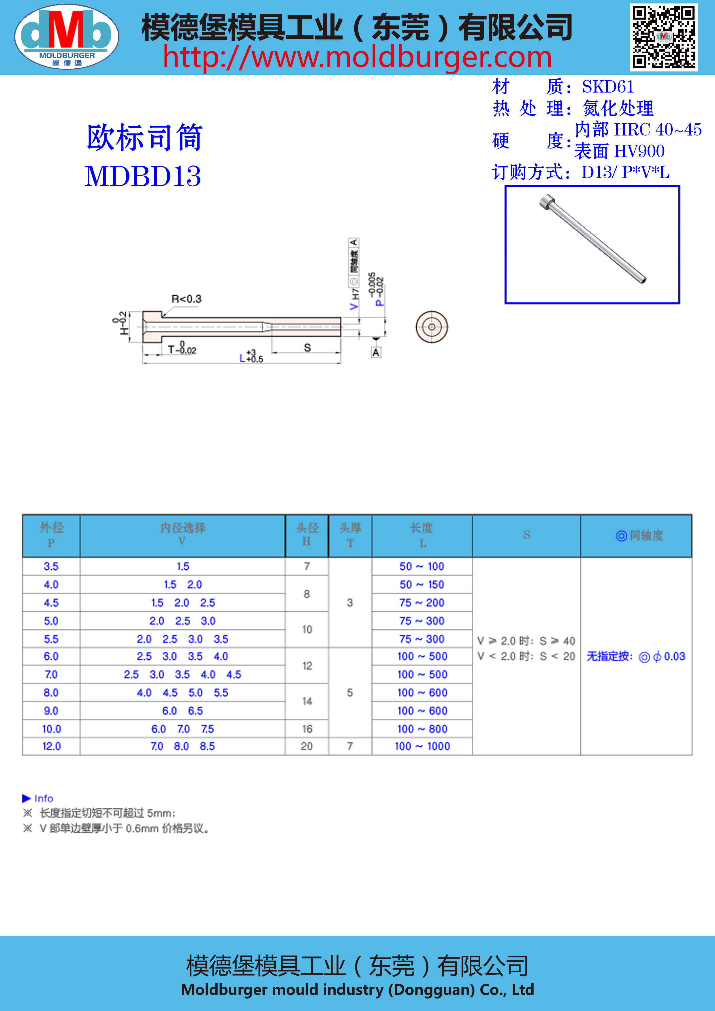 MDBD13欧标司筒表面硬(定做品,请联系客服报价)