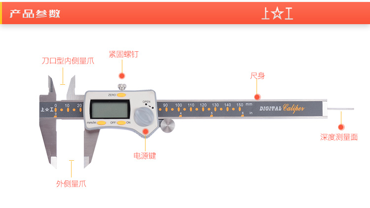 上工 三按键电子数显卡尺
