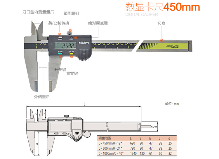 三丰 三按键电子数显卡尺