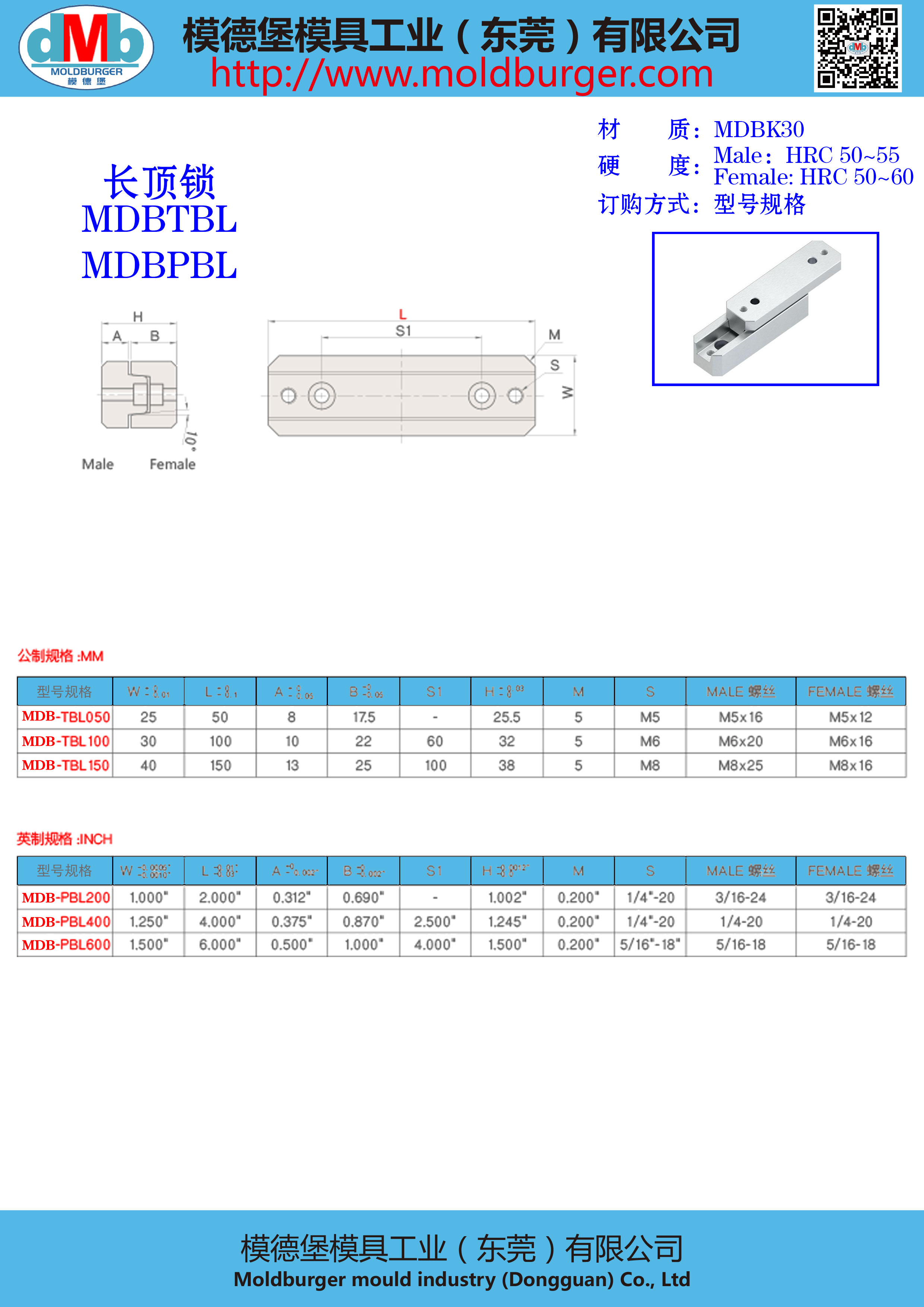 MDB-TBL MDB-PBL 长顶锁 边顶锁辅助器 长型辅...