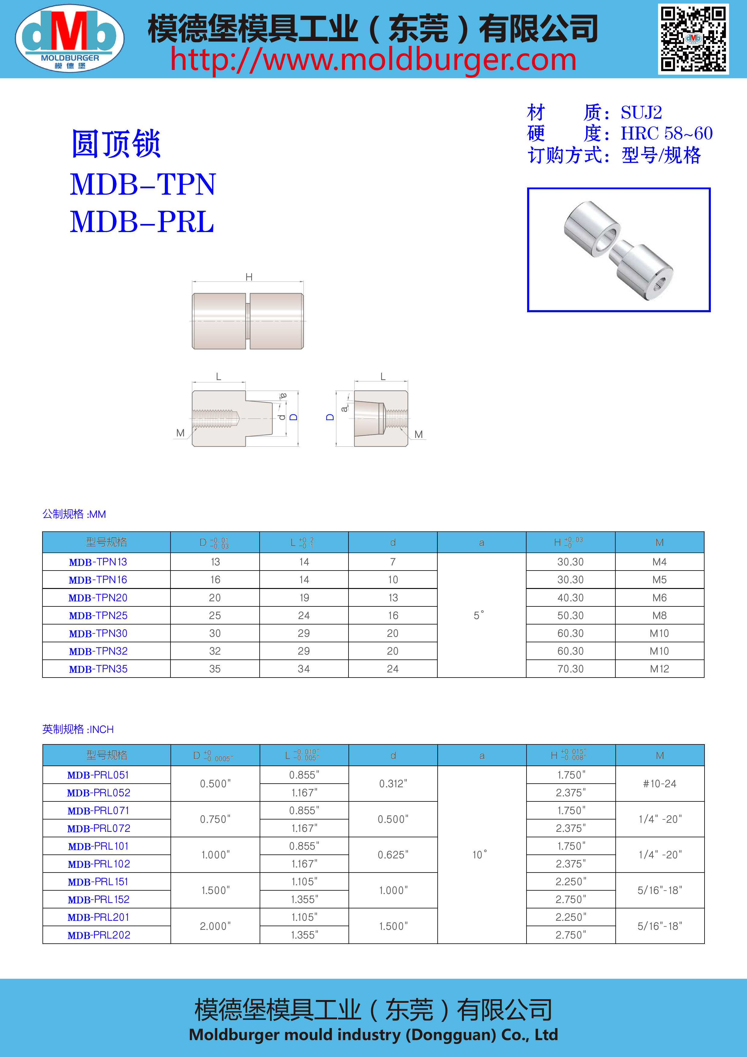 MDB-TPN 圆顶锁 定位柱 锥度定位柱 模具精定位 高精...