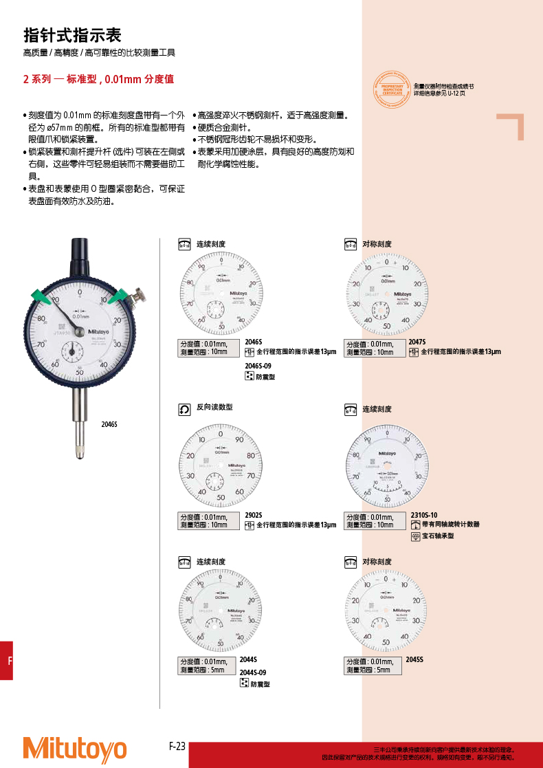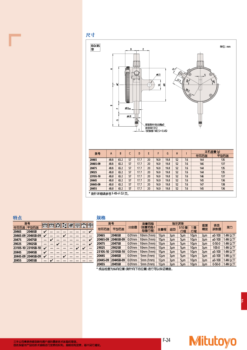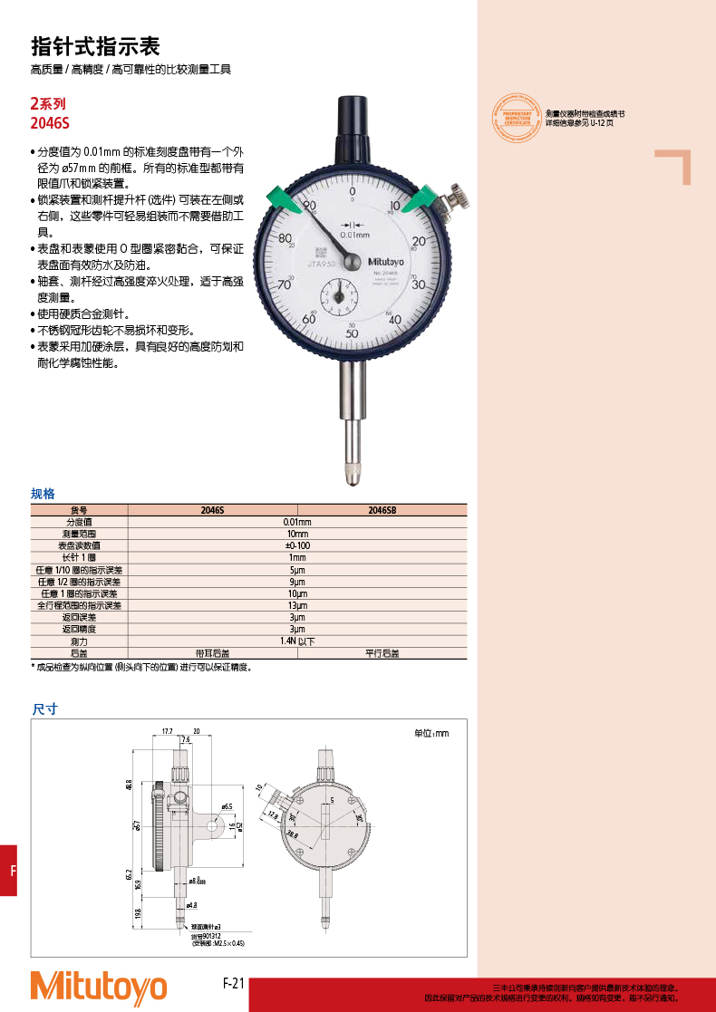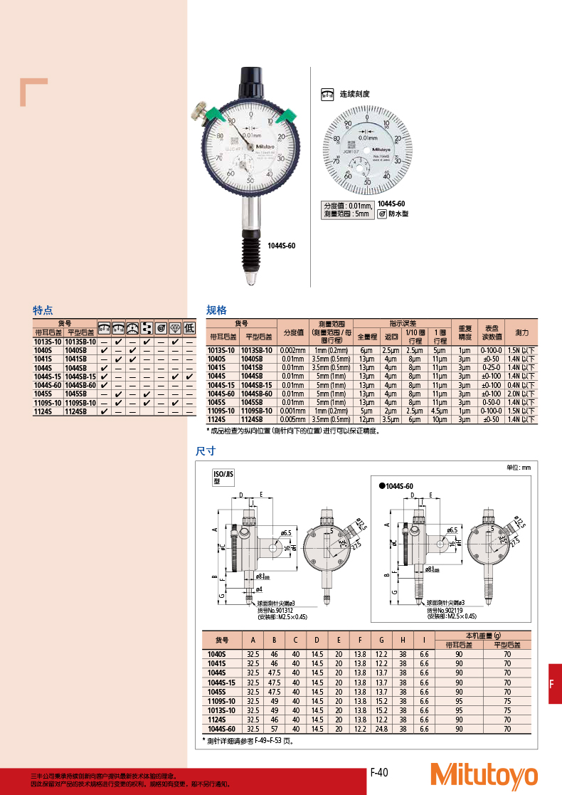 三丰 百分表 1044S 2044S 1040S 2046S...