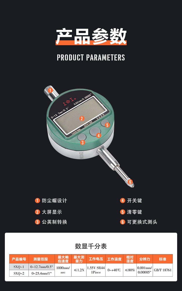 SXQ 上工 电子数显千分表指示表 数字式指示表测量工具0-...