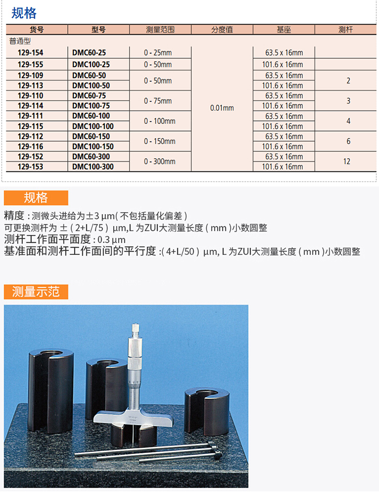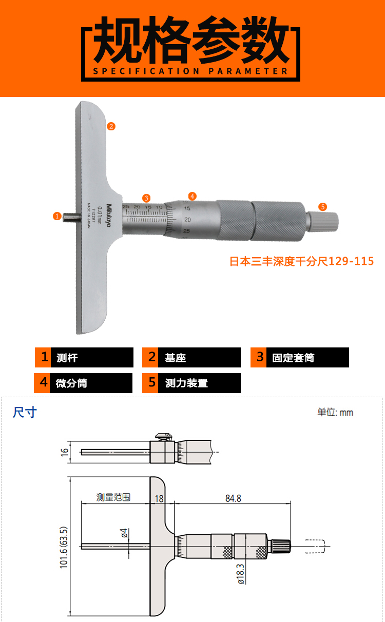 三丰 深度千分尺 129